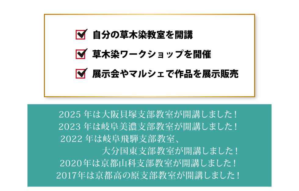 | 2012年〜 | 京都府の複数の小学校の課外授業で、小学生に草木染を教える。 |