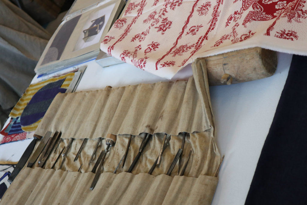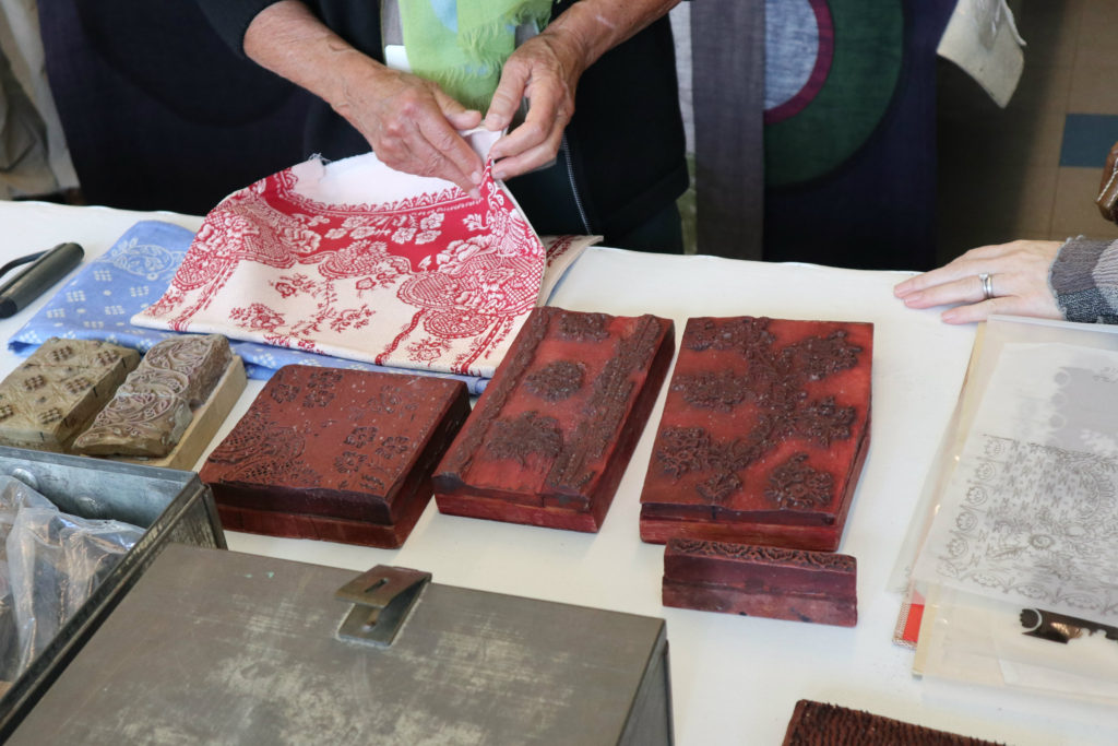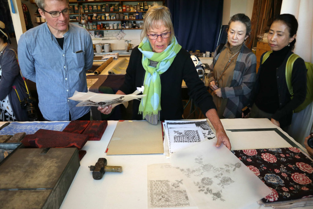 Birgitteさんは若いときからデンマークの伝統衣装に使われる布のプリントの仕事もされているそうで、「シルクスクリーンの技法ができる前は木の型を自分で彫ってプリントしていたのよ」と古い木型や図案も見せてくれました。