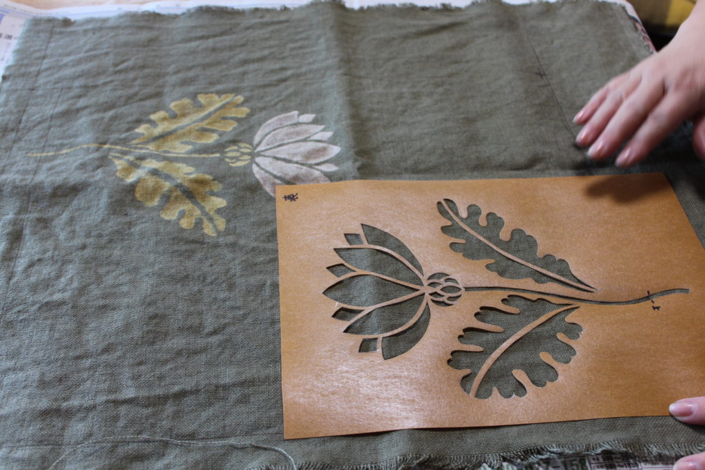 ヴィンテージ感を出したいと型紙のカットも、わざと切れにくいカッターでカットされました。いい感じでていますね~。