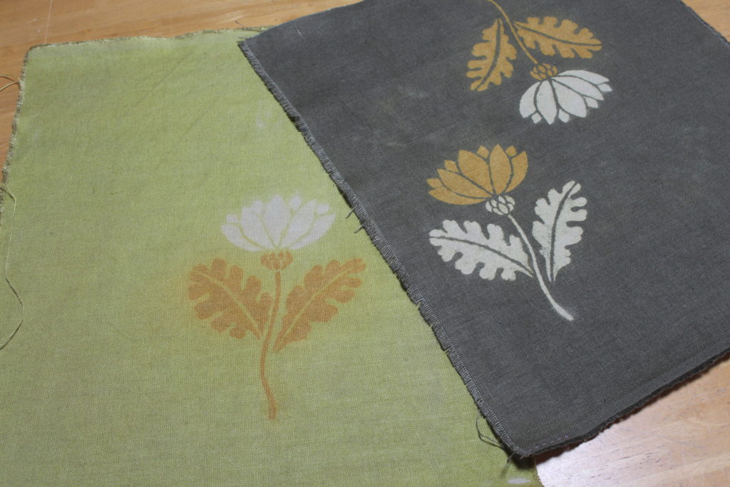模様の位置や布の配置など各自が書いた指示書に従って、仕立ててもらう縦長と横長のトートバッグ。