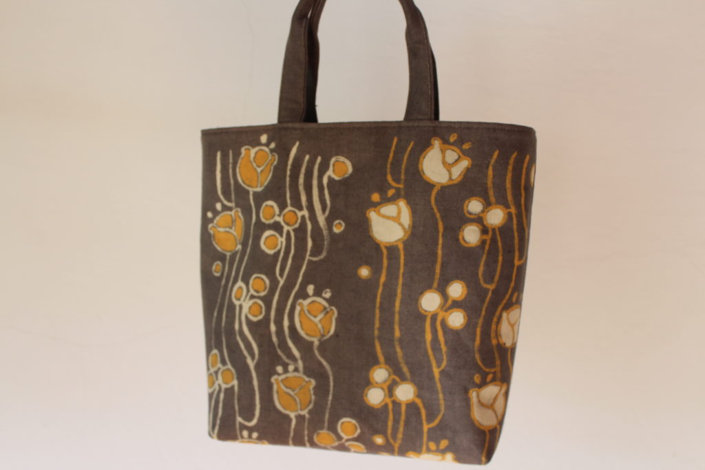 通学部のYさんの作品です。お仕事がお忙しい中、教室でアカメガシワで染めた後、着抜はご自宅でされました。きれいに着抜されていますね! ぼかし染めがバッグに表情を与えて素敵です。
