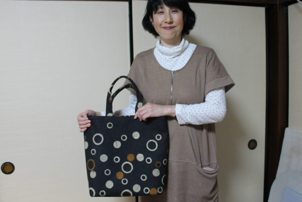 「これからも練習を重ねてもっときれいな線を書きたいです」と今回残念がっていましたが、バッグに仕上がってくると、「それなりにいいなあ!」と満足の笑顔に。それは良かったですね。