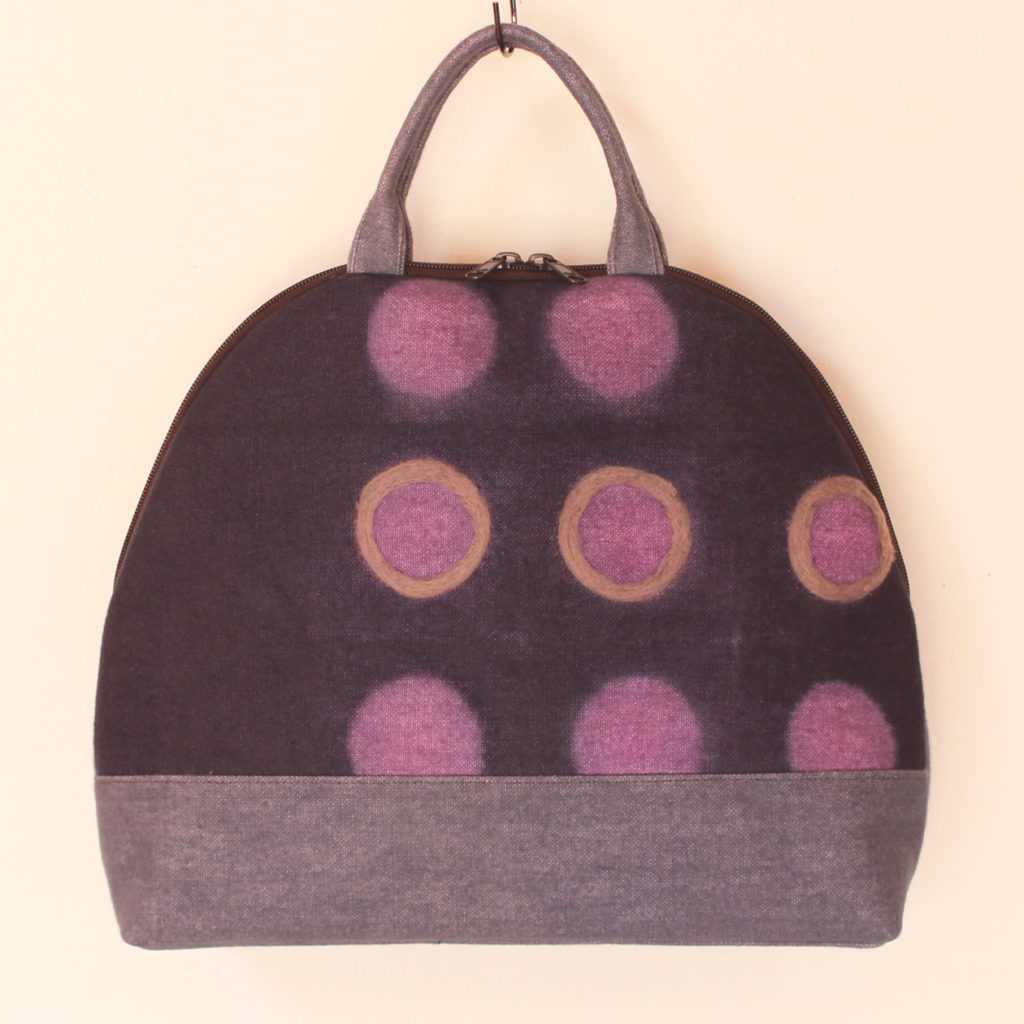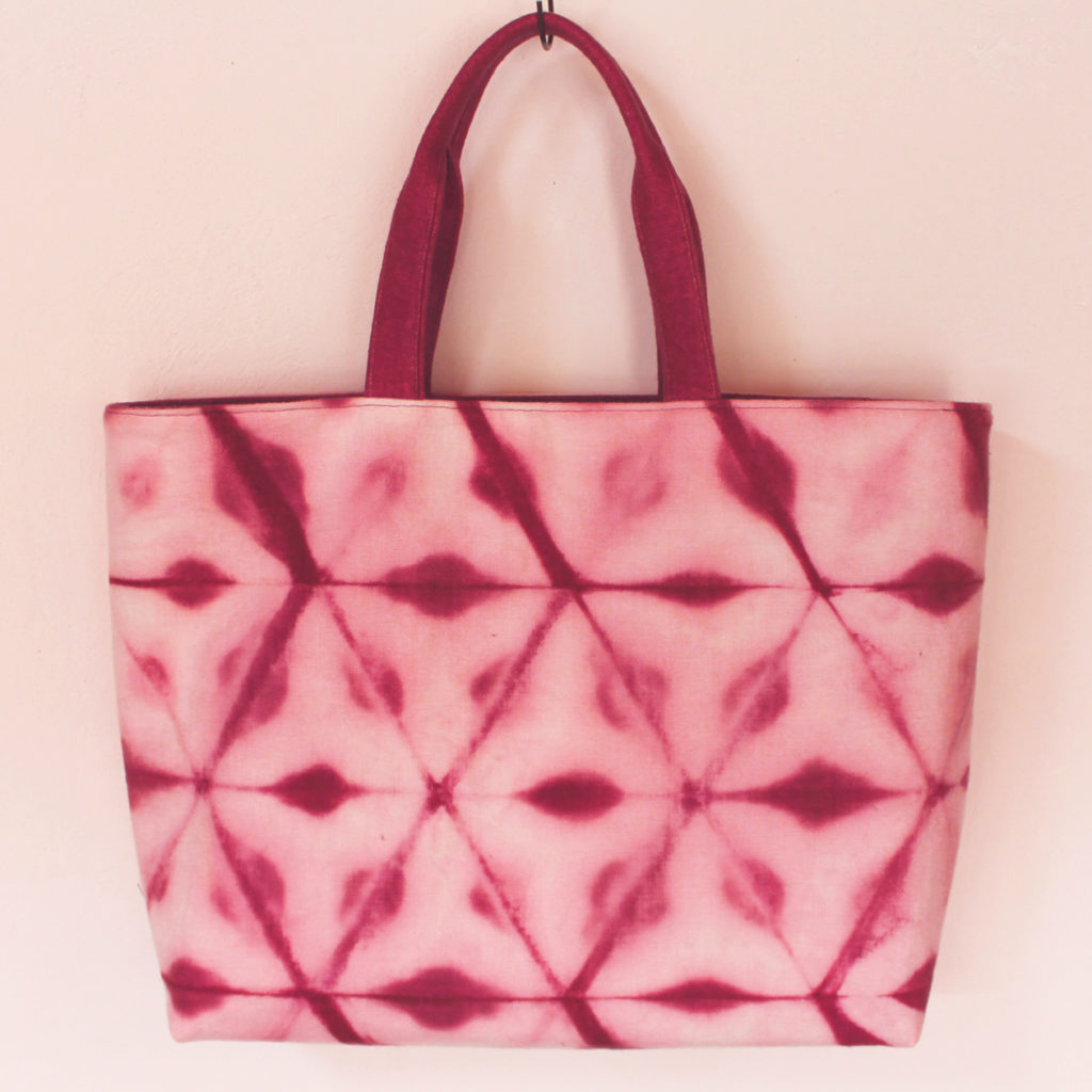 用いた技法:板締め絞り、ニードルフェルティング