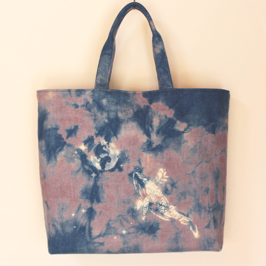 用いた技法:むらくも染め・平縫い巻き上げ絞り・平縫い帽子絞り・藍抜染・フェルティング