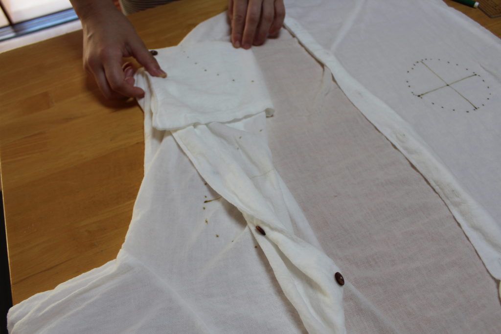 ブラウスに、花火模様を入れたいところに印をつけて