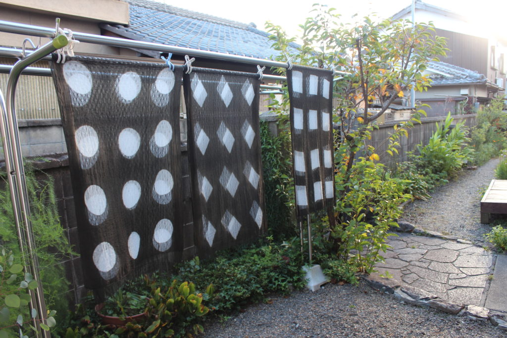 ののはな草木染アカデミー上級コースの1日目は、「服の染め方と花火模様の絞り染めを学ぶ」、2日目は「板締め絞りの重ね染めを学ぶ」と「多色の斜めぼかし染めを学ぶ」です。