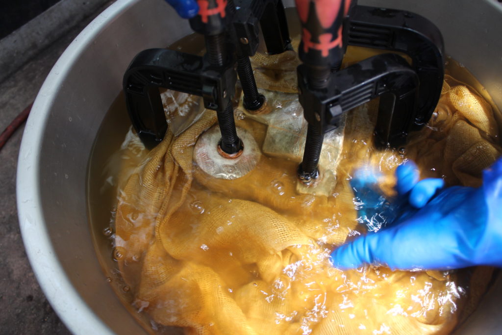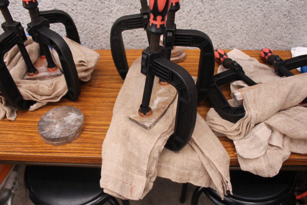 皆さんかなり苦労していましたが、それぞれ万力で締めて染める準備が出来ました。