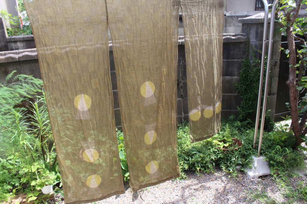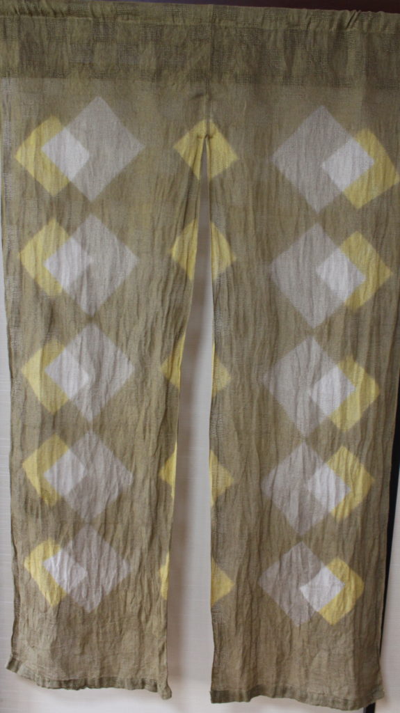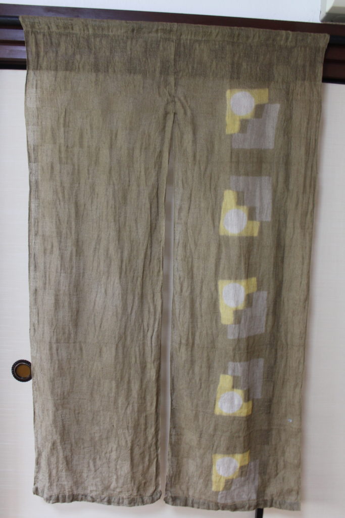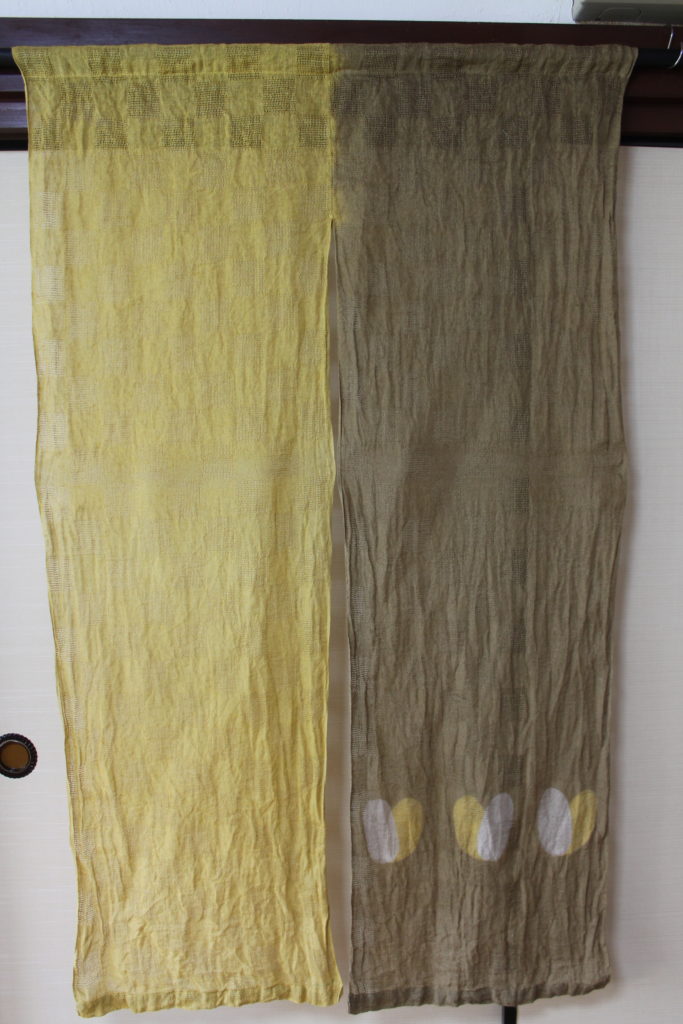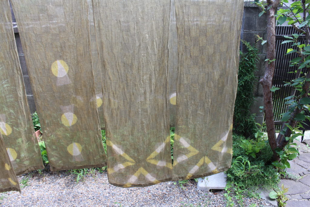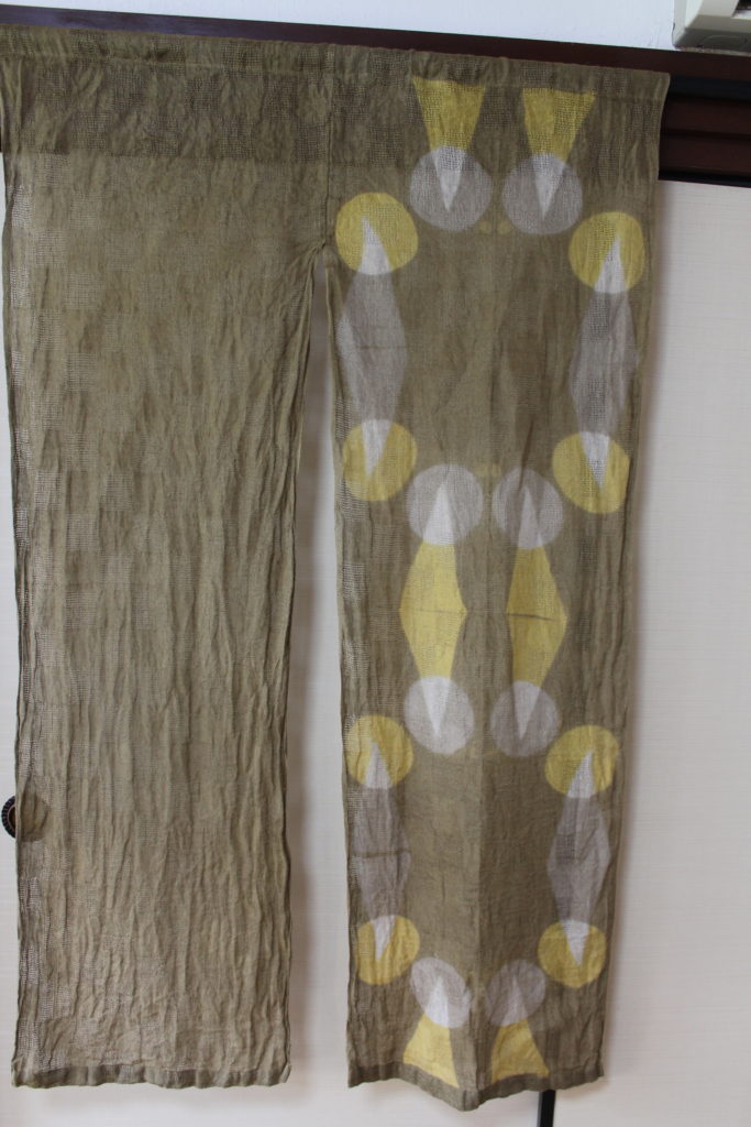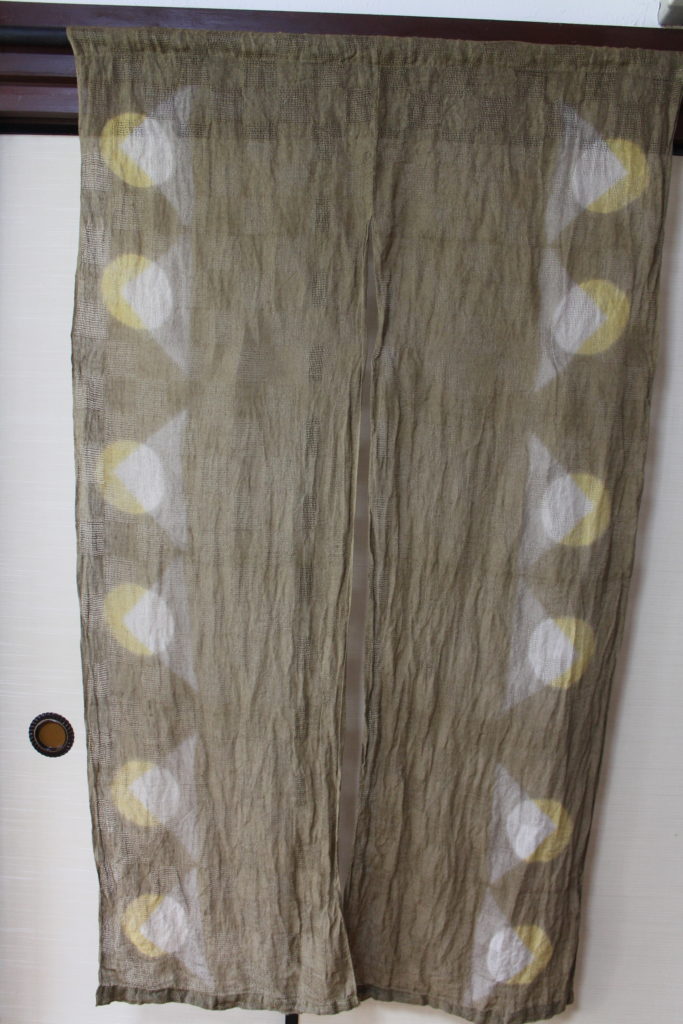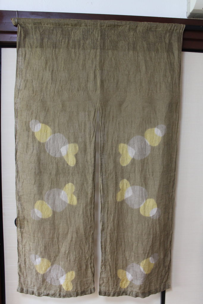 結構複雑な手順で出来上がった模様です。アイロンがけはまだできていない段階ですが、模様がきれいに並んでいて、すっきりしたのれんに仕上がっていますね。