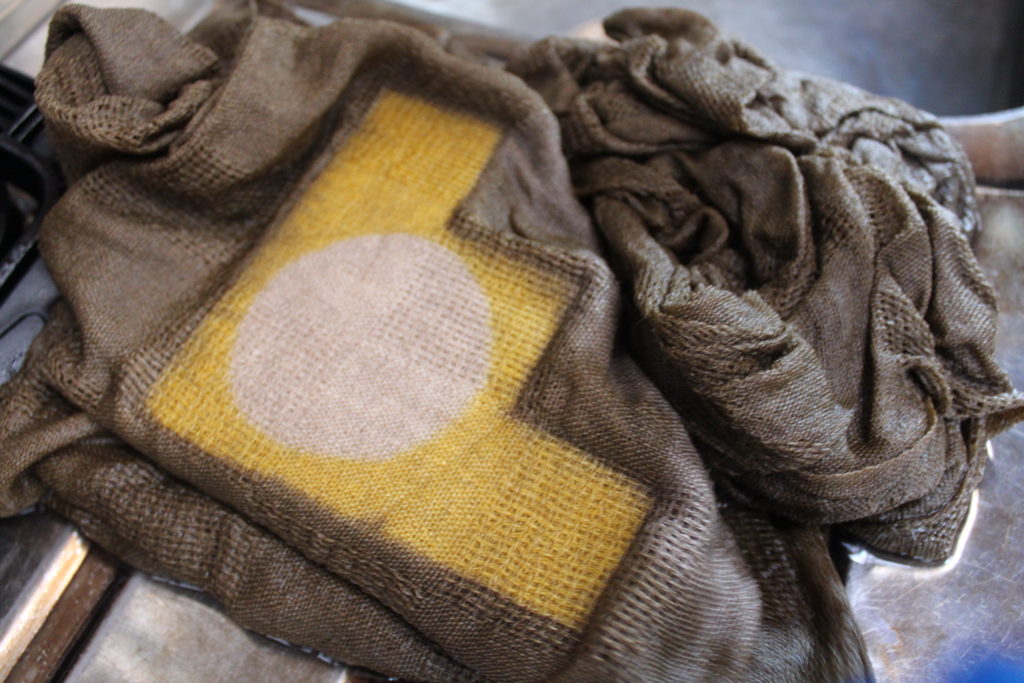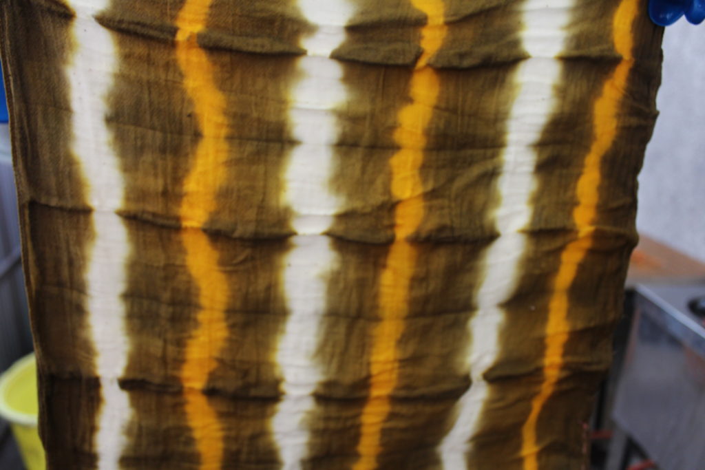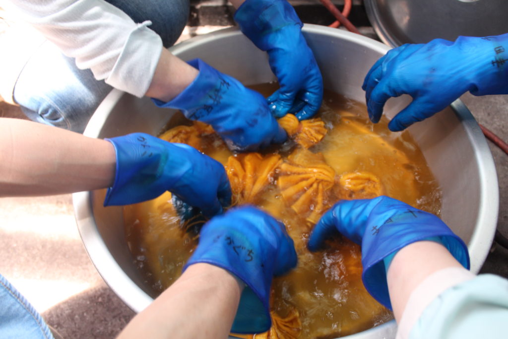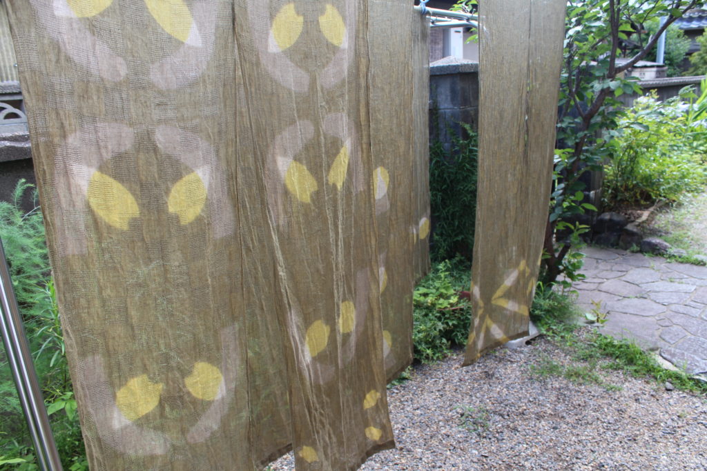 ののはな草木染アカデミーインストラクター養成講座7月の第2日目は、綿ストールと大きいサイズの麻のれんを染めました。