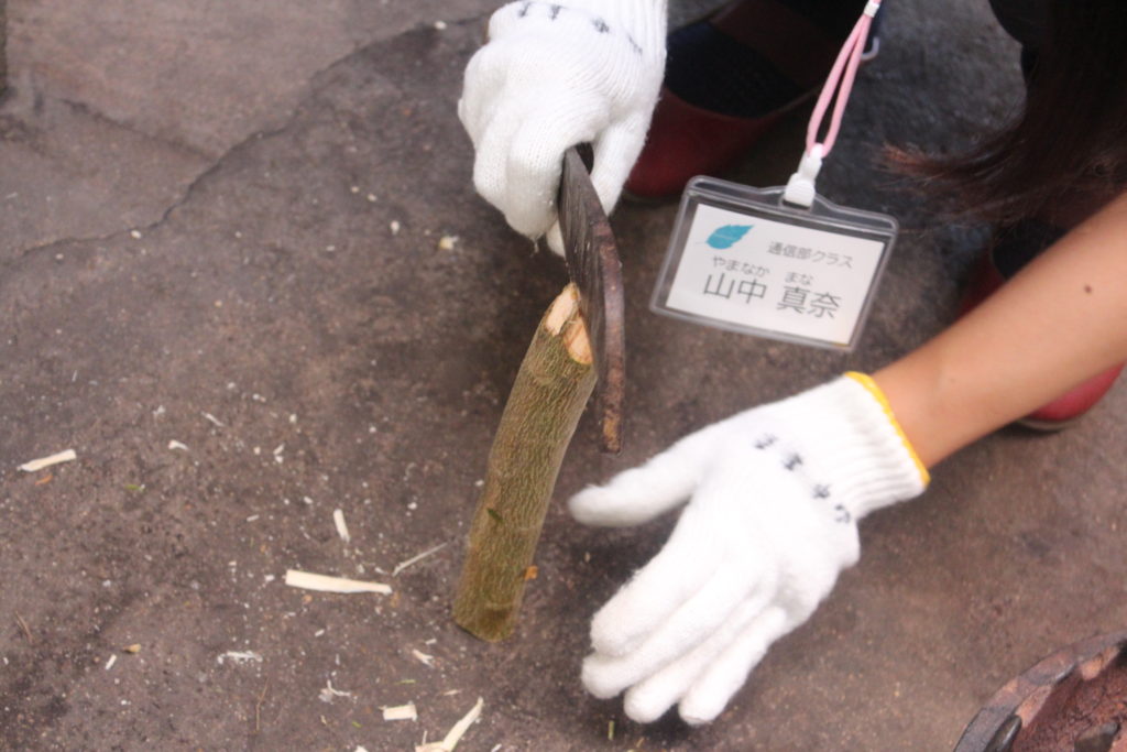 太い枝は鉈(なた)を使って割ったのですが、これまで人生で初めてのようなこの作業もみなさん興味を持って取り組んでいました。たださすがに鉈を使って枝を小さく割るのは怖いと言っている人もいましたが。