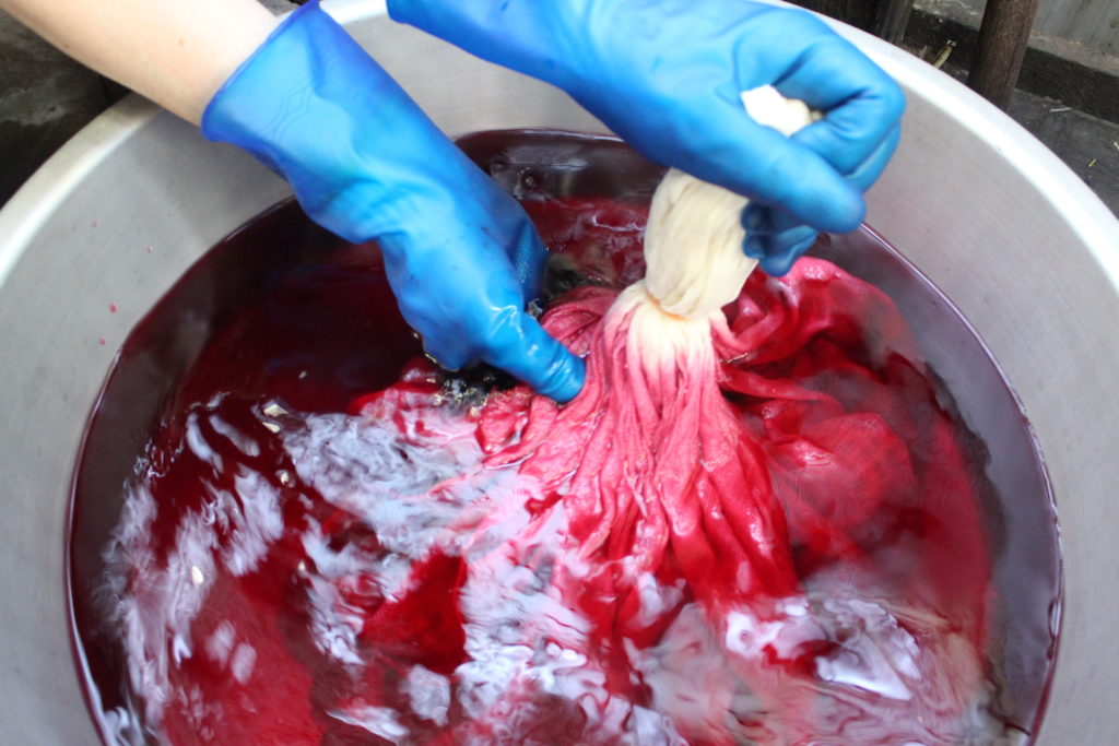 秋が深まってくる11月は、シルク、麻、木綿、ウールなどの糸と原毛を染めていきます。