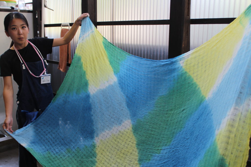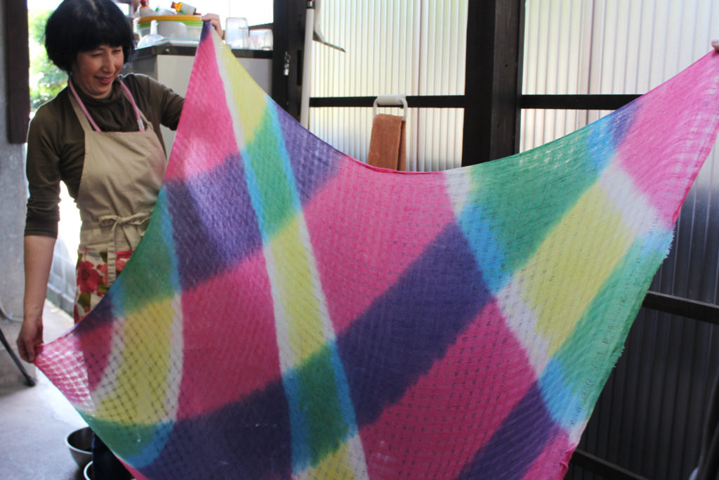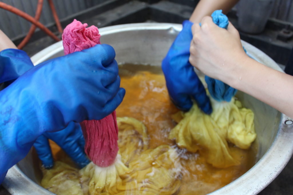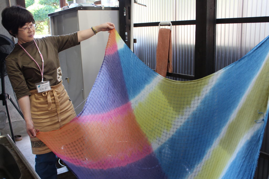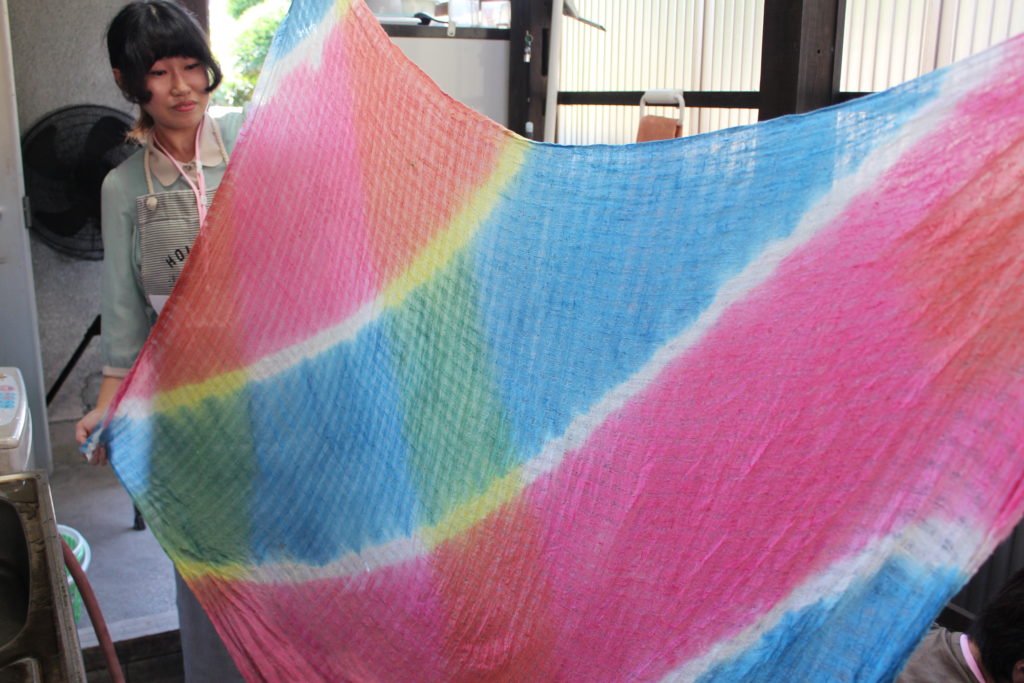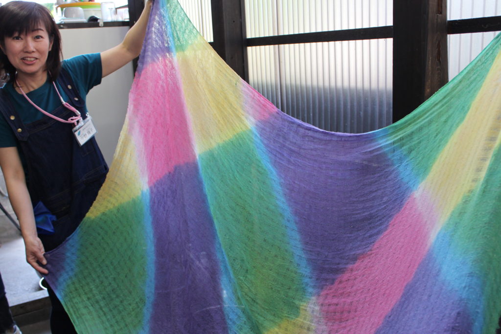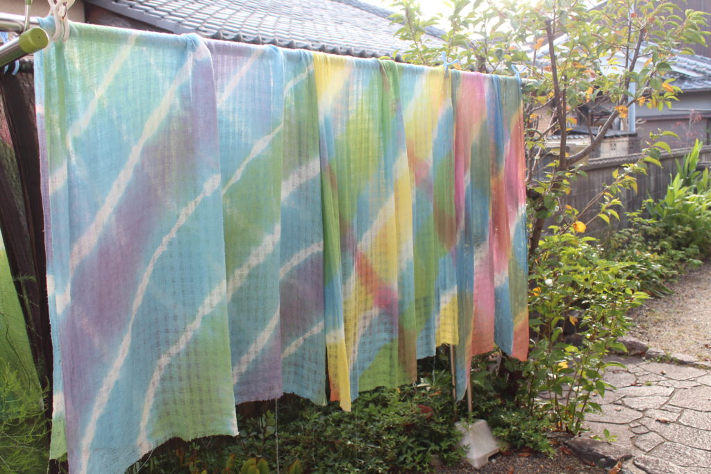 それぞれに好きな色の組み合わせで染めた多色による草木染、とてもみなさんに喜んでもらえました~。