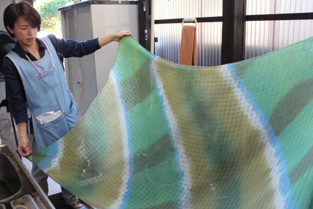 もう片方からも染め重ねると、こんなに美しい何色もの色が染まりました。