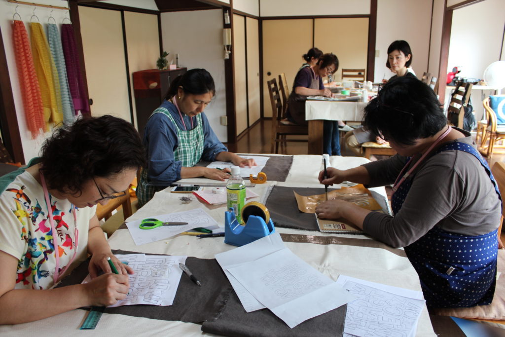 草木染についての基礎知識もだんだん身につき、9月はいよいよ中級コース最後の授業です。トートーバッグを創るためのテキスタイルを制作し、プロの方にバッグの仕立てをお願いしました。