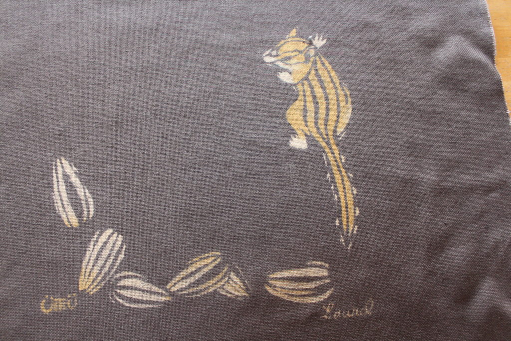 上津原さんは、「このバッグを高校3年生の息子が気に入って、使ってくれています」と嬉しそうにお話しされていました。気に入ってもらってよかったですね。シマウマとリス、楽しい図案が生き生きと表現されています。