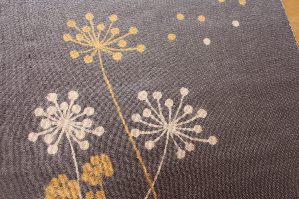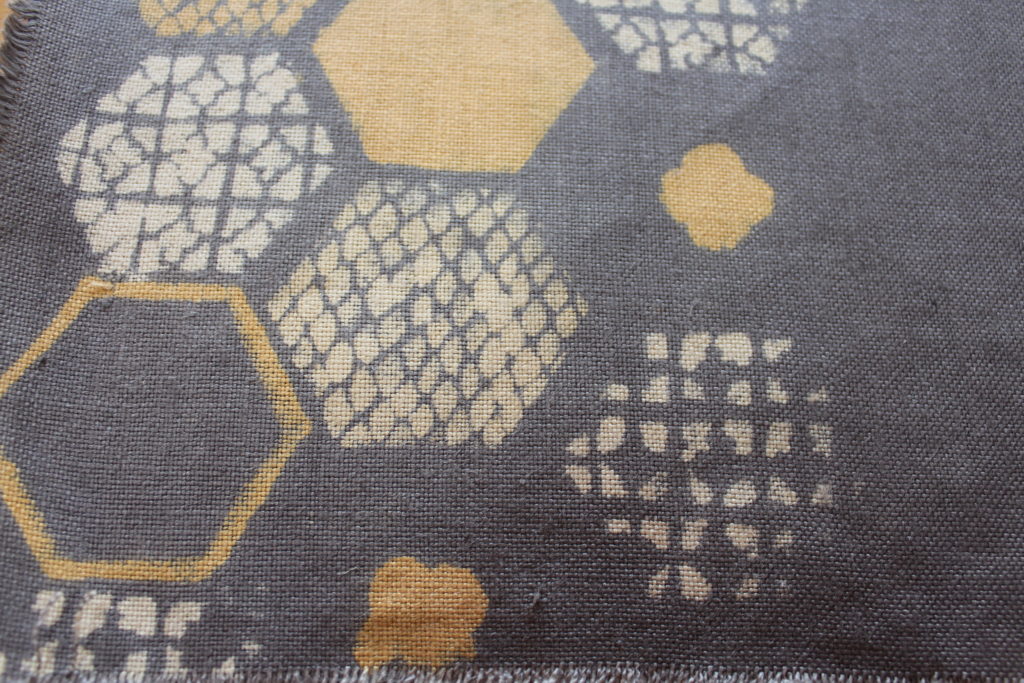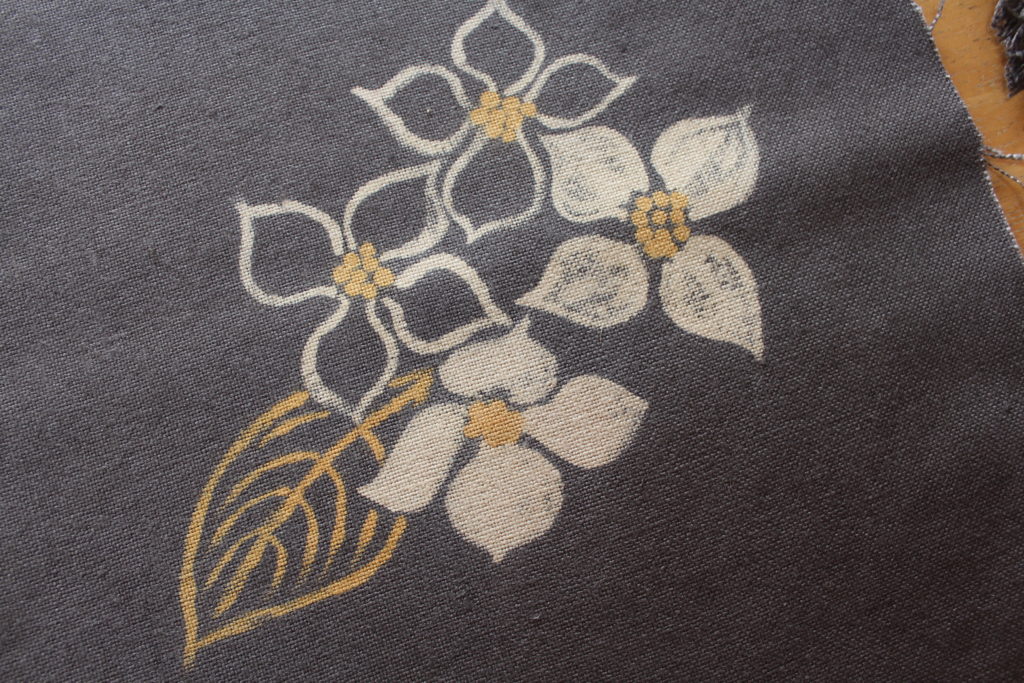 太い線、細い線が自在にフリーハンドで描かれていて、大胆な模様になっています。一方裏面は、ハナミズキが優しく描かれていて、両面が楽しく使い分けられますね。