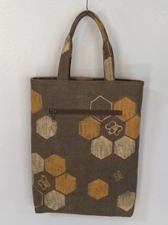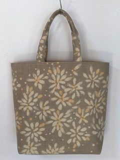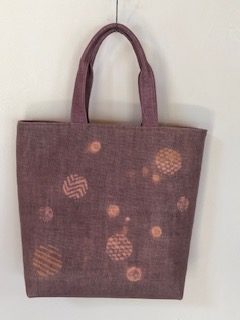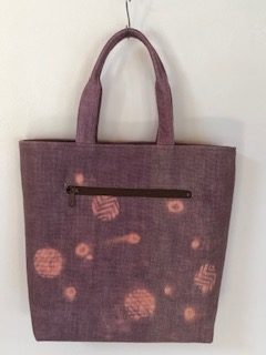 植物から頂く色を大切に、ゴム版や自分で彫った型紙、手書きなどで一点づつ模様が作られた個性あるバッグをどうぞご覧ください。