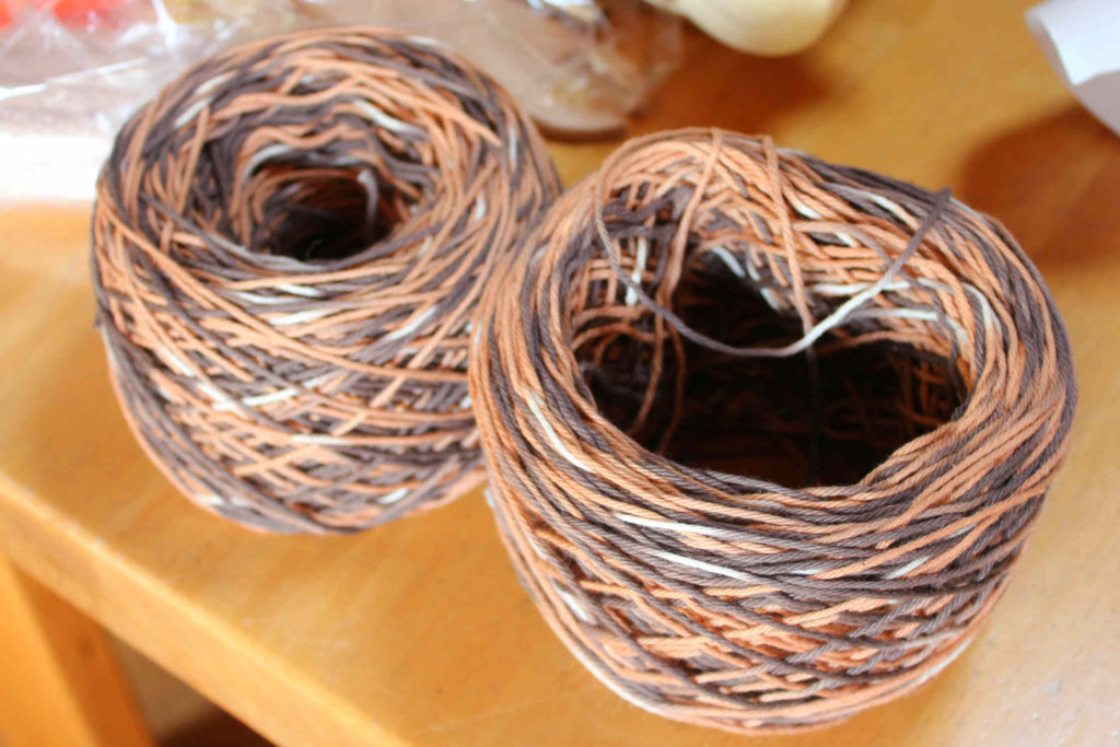 まずは10月から12月にかけて、自分の好きな色で綿の糸を染めていただきました。