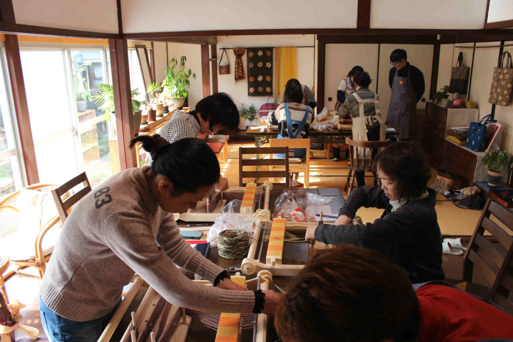 昨年、普段とは違ったこともできたら面白いかなと思って草木染した糸で織の見本を作ってみたところ、多くの方から「織もやってみたい!」とのご要望がありました。そこで「咲きおり」という卓上の織機を導入して、全クラスで織をすることになったのです。