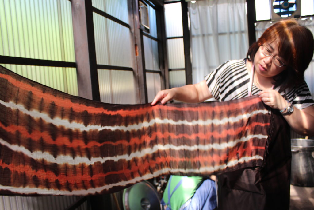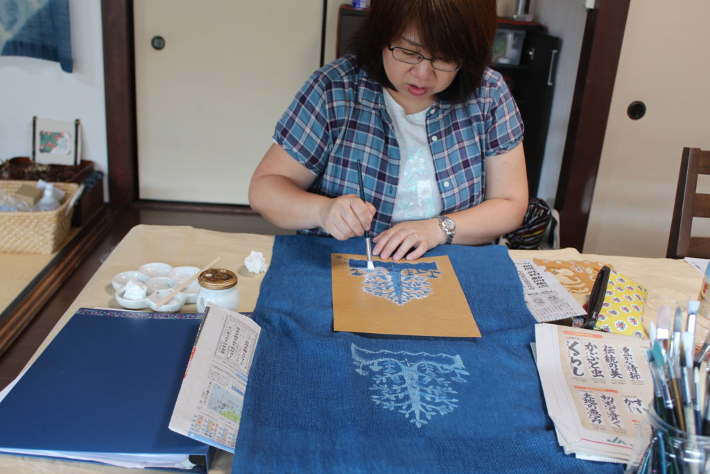 「私は今現在、特別支援学校で教員をしています。ある時、授業の中で、お茶で染め物をしようとして、なかなか上手く染められず、それ以来、私の中で染め物というのは難しいものであり、いつかきっかけがあれば是非ともやってみたいと思っていました。