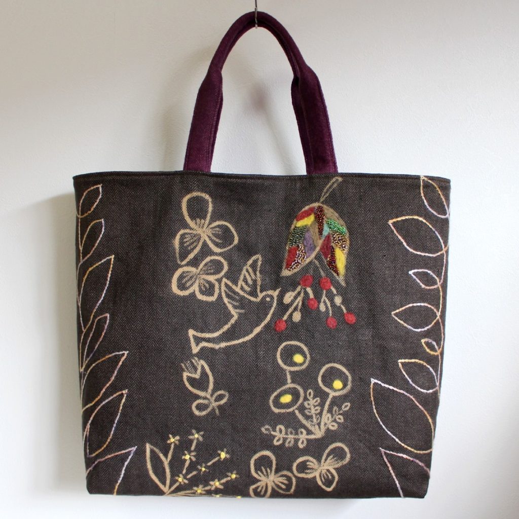 トートバッグとしては実用性に欠けていますが、自分の心にひびく物を形にできてよかったと思っています。