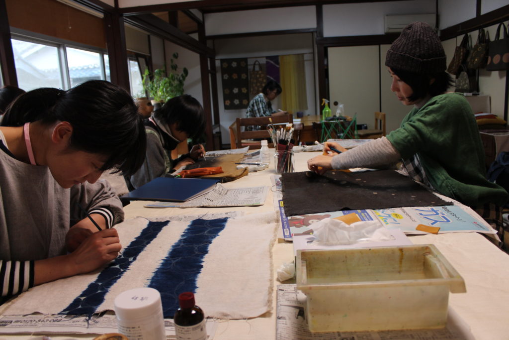 昨年4月から始まった、ののはな草木染アカデミー「草木染インストラクター養成講座」の授業も、12月から1月にかけて修了制作に入りました。これまで学んできた「様々な染め方や技法を2種類以上組み合わせて制作する」という決まりでバッグとなるテキスタイルを修了制作として作っていきます。