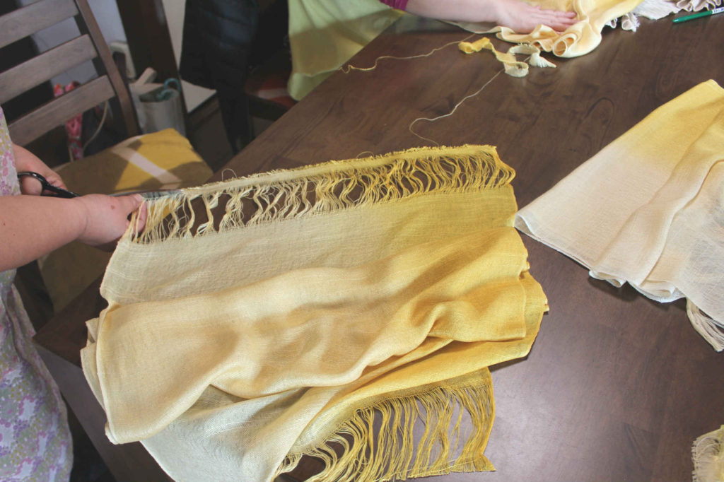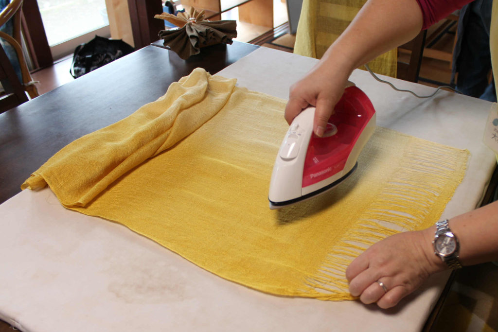 一日目に作る課題作品は、ぼかし染めのシルクストールです。